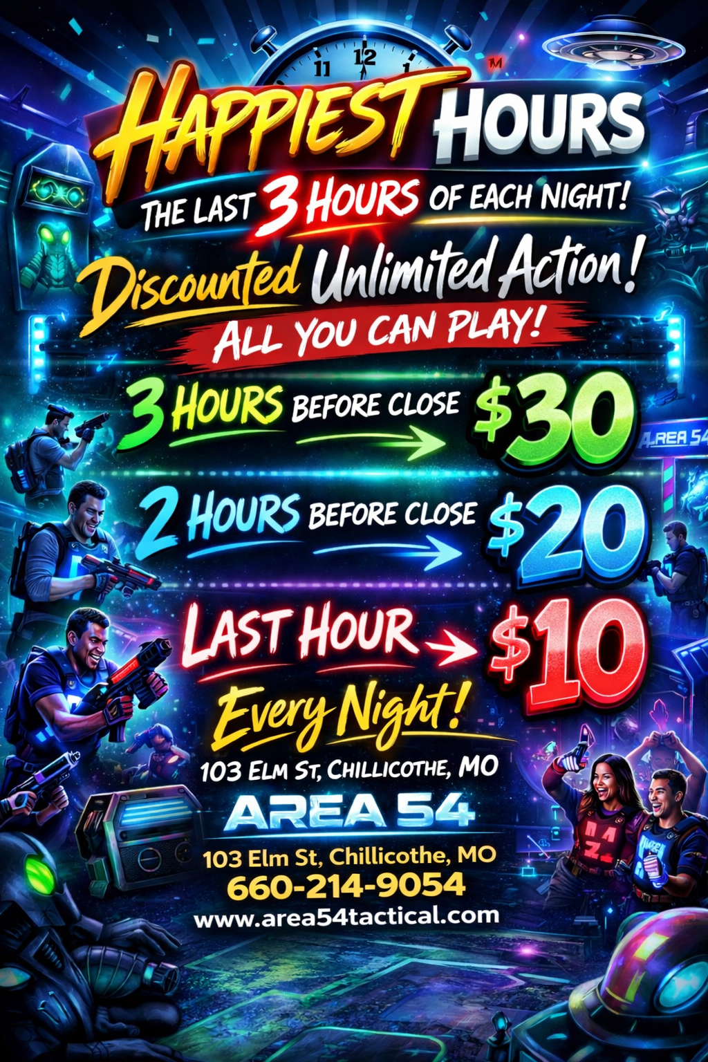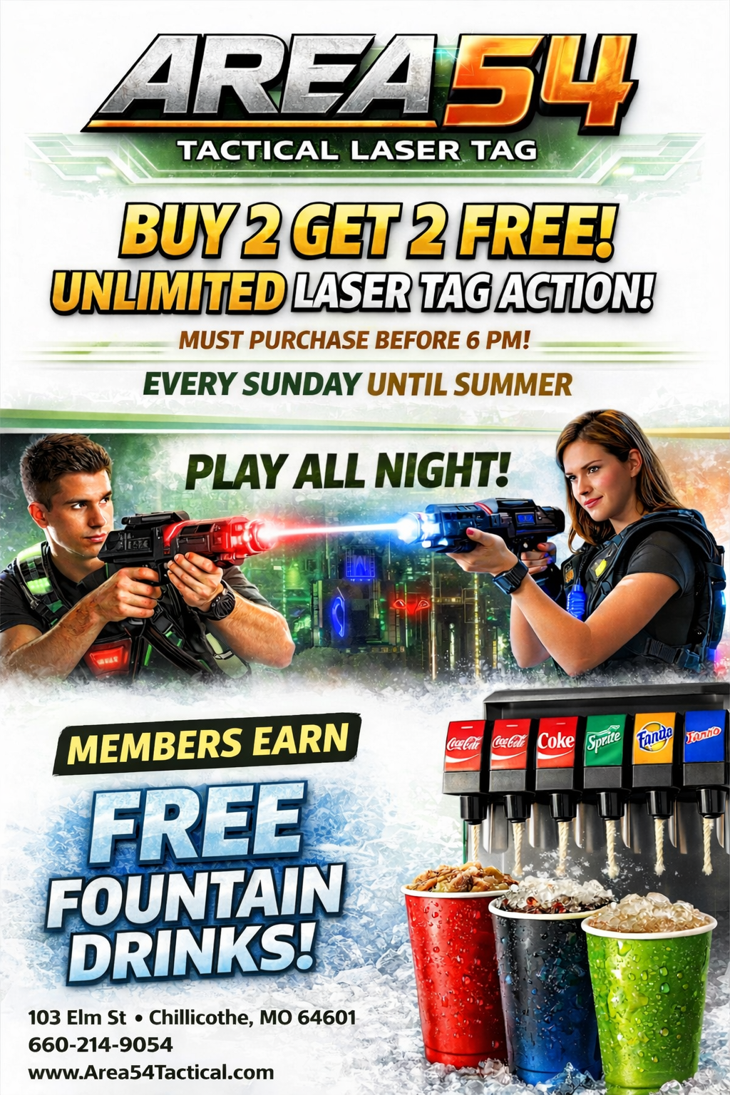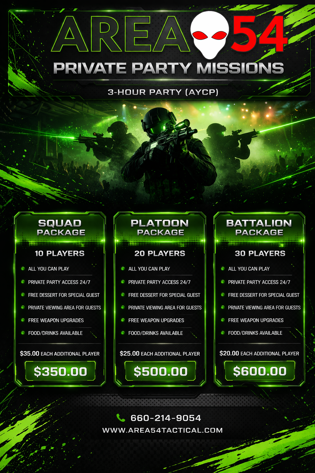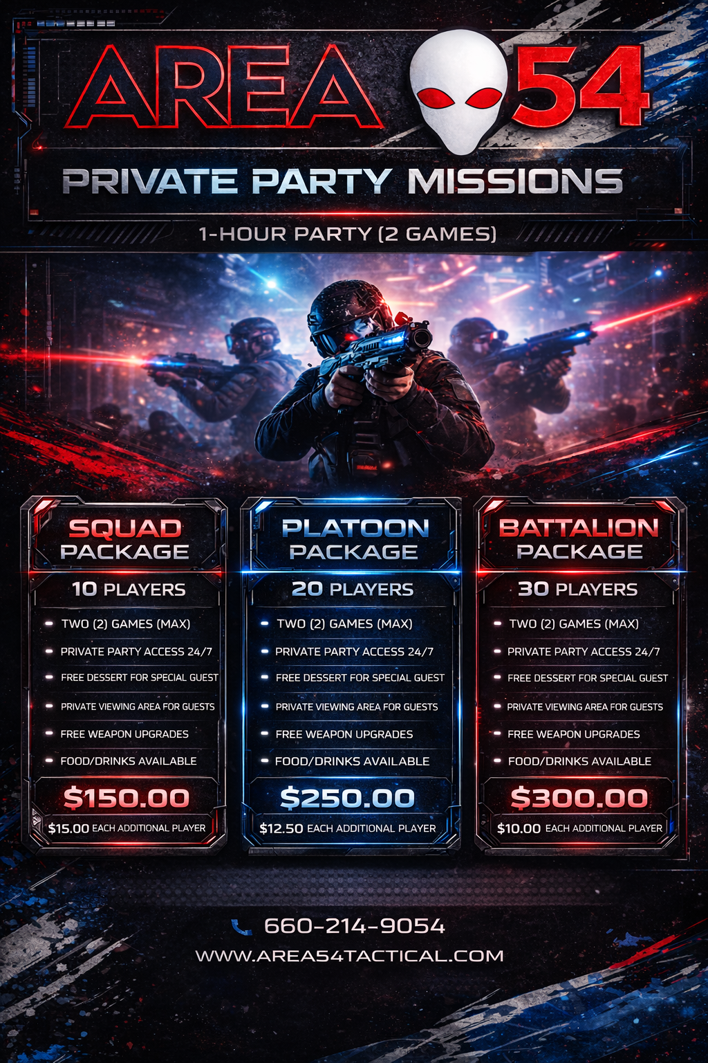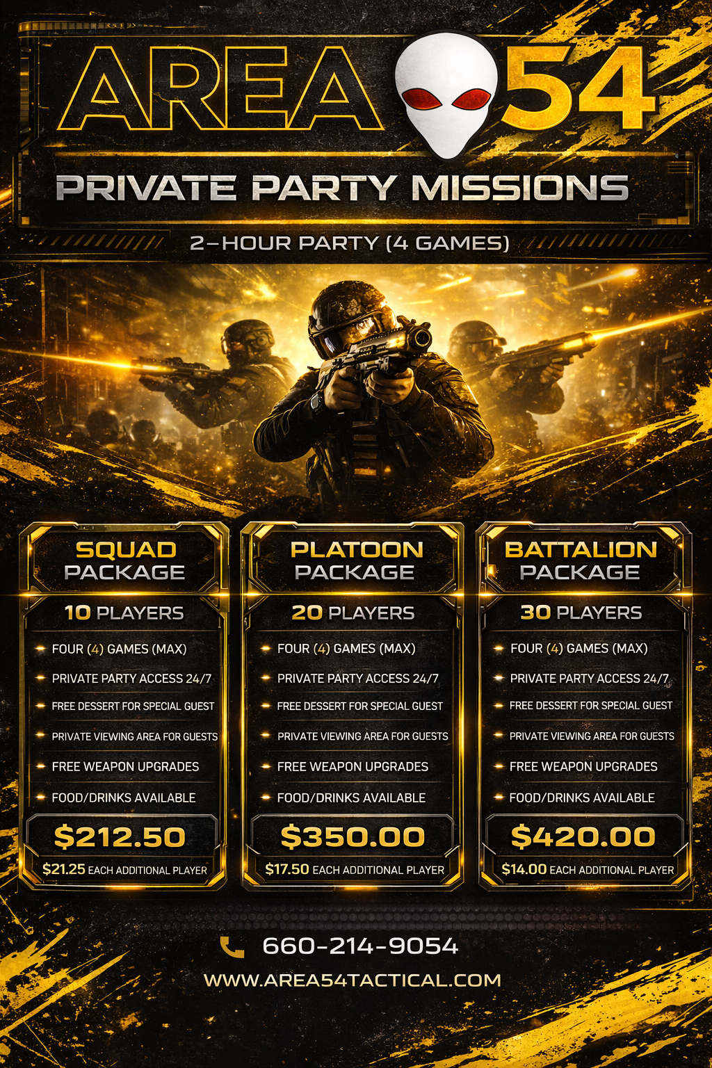 AREA 54 Gift Certificates are now available to be purchased with the following options: Free Gameplay Sessions (1 Session, 2 Sessions, or 4 Sessions) and Cash Value Equivalent ($50, $100, $150).